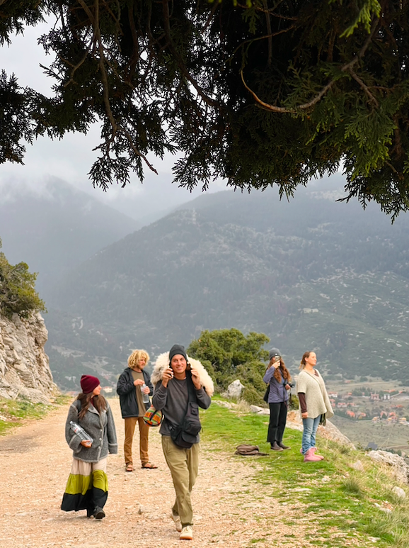 we gave thanks, closed the space in feeling complete and made our descent. after hiking out in the windy rain, our day ended with a traditional greek dinner, warm fire and integration. the treasures of this experiences aren’t to be shared, but what i can say is that this was the work of lifetimes. there was clearing, healing, resolution, confrontation and dismanling. the religious occupation deeply harmed this place and left a grueling imprint that we worked to clear and restore to the organic blueprint. we experienced a beautiful response from nature through synchronicity and the manifestations of rainbows during both the ascent and the descent of the cave, and the most incredible sunset! wow.